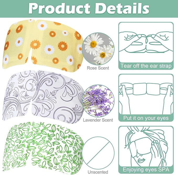 • Reliable Material: these steam eye masks disposable are made of quality non woven fabric, soft, breathable and safe to use; They are designed with elastic ear straps for a snug fit; 3 Styles eye mask bulk allow you to choose your favorite ones and keep your eyes relaxed freely