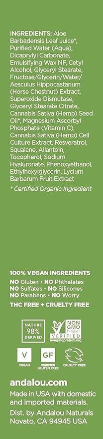 • Ingredients From Nature: Andalou Naturals products are 98% nature-derived and vegetarian with a large vegan offering; Plus, we're gluten-free and cruelty-free—we never test on animals