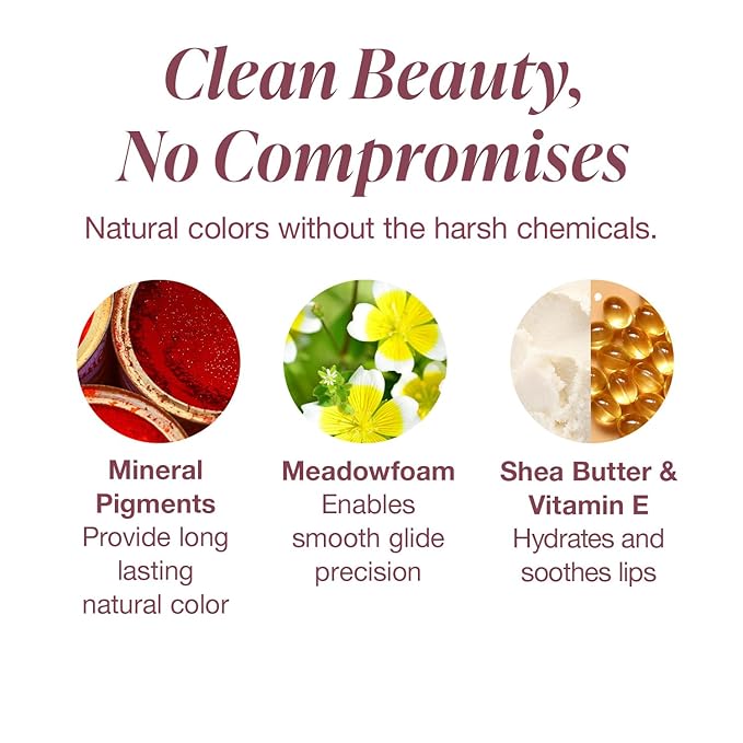 • Natural Formula: Get precision lines without feathering; Formulated with Shea Butter, Meadowfoam and Vitamin E to hydrate and soothe delicate lips; Vegan, toluene free, camphor free
