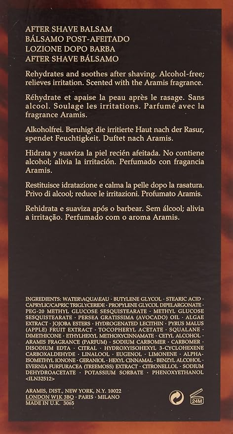 • Scent : Aramis Advanced Moisturizing After Shave Balm