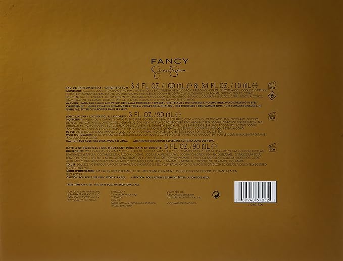 • 4 Pc Gift Set 3.4oz EDP Spray, 0.34oz EDP Spray, 3oz Body Lotion, 3oz Bath & Shower Gel