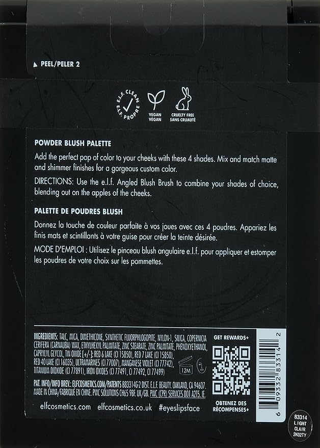 e.l.f. Cosmetics Powder Blush Palette, Four Blush Shades for Beautiful, Long-Lasting Pigment, Light