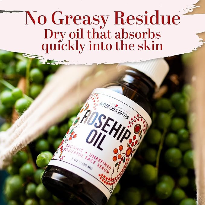 Better Shea Butter Organic Rosehip Oil | Rose hip oil for Face | Face Oil for Gua Sha Massage | Cold Pressed, 100% Pure | 1 oz
