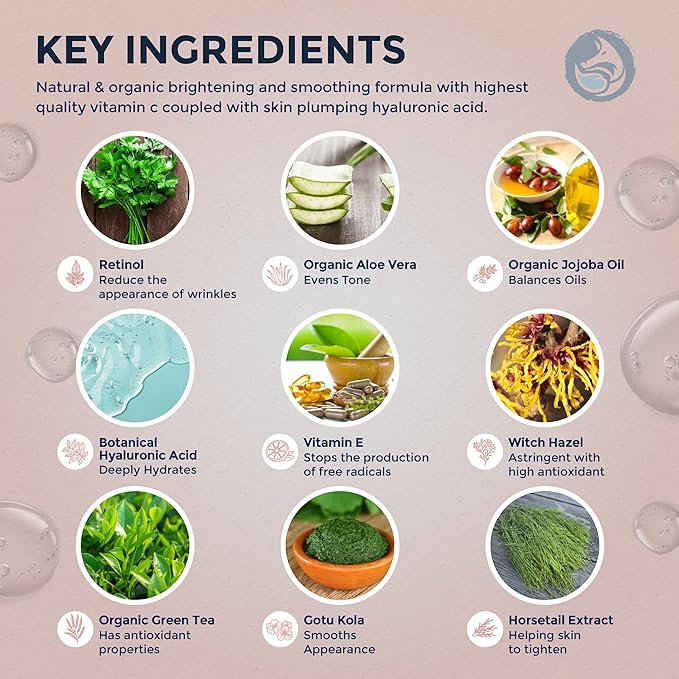 • Special Ingredients : Hyaluronic Acid, Organic Jojoba Oil, Horsetail Extract, Gotu Kola