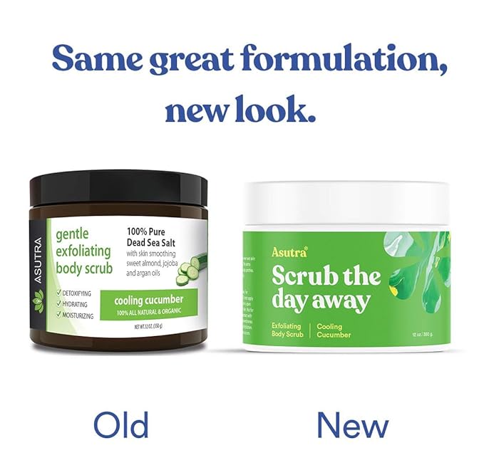 ASUTRA Dead Sea Salt Essential Oil Body Scrub Exfoliator (Cooling Cucumber), 16 oz - Ultra Hydrating, Gentle, & Moisturizing - Coconut, Cucumber, and Peppermint Oils