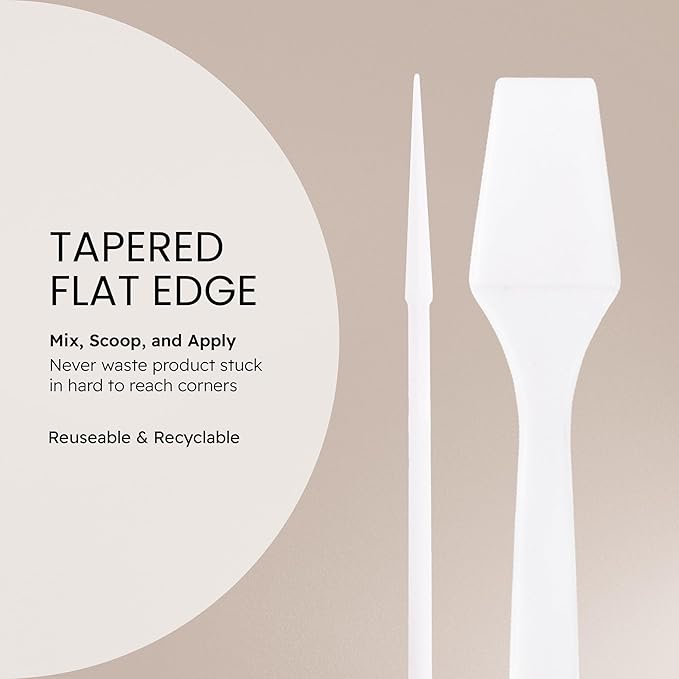 • Hygienically test, mix or apply make-up or skin care products with this disposable plastic white spatula.