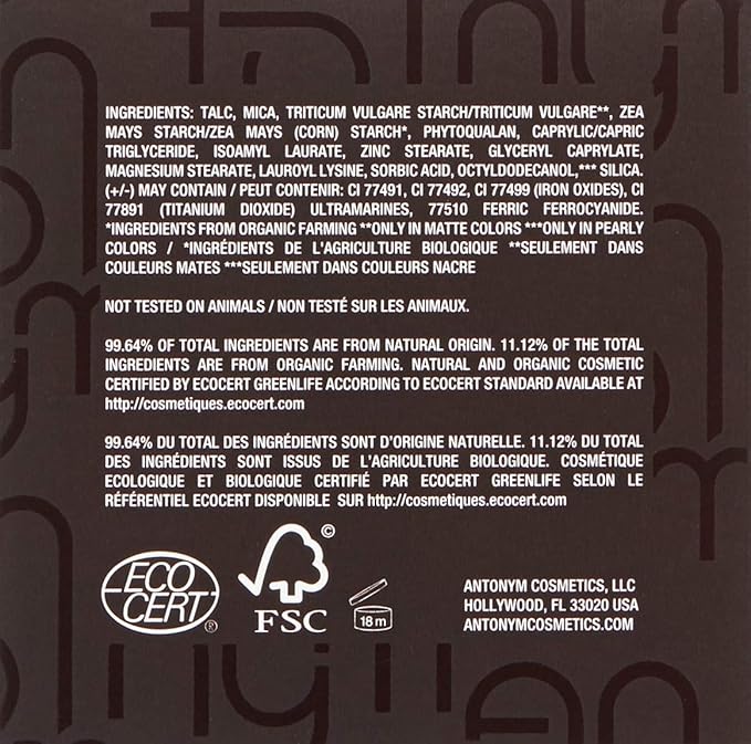 - Get the glow you want with Antonym Cosmetics Baked Blush. Highly pigmented, buildable, and long-lasting, our Mineral Powder Blush can be applied in a multitude of ways to create different looks. Layer on for a more intense color, or apply lightly for a natural glow. This Antonym Cosmetics Baked Blush Mineral Powder is the perfect way to add an eye-catching shimmer to your makeup routine. The high impact buildable color provides long-lasting, highly pigmented blushing that won’t fade.