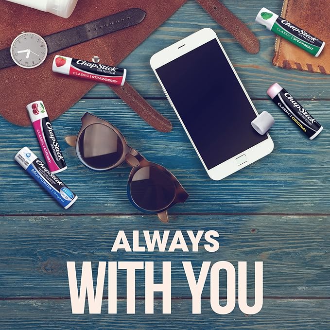 • Pack includes: ChapStick Original, Strawberry ChapStick, Spearmint, ChapStick Moisturizer Original with SPF 15, and Cherry lip balm tubes