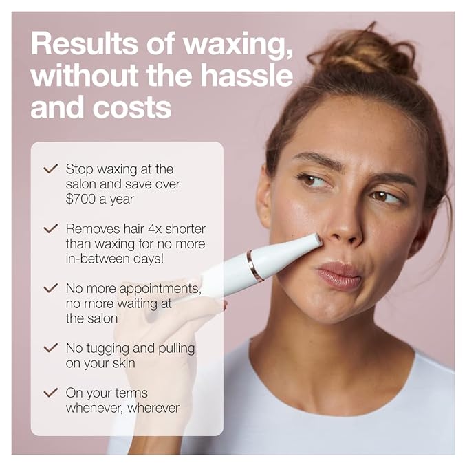 • Facial epilator removes 4x shorter hair than wax for a smooth, clear complexion