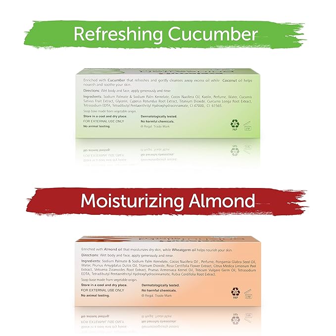 • FOUR GREAT CLEANSING BARS: Try them all. Moisturizing Almond, Nourishing Cream & Honey, Purifying Neem & Turmeric, and Refreshing Cucumber.