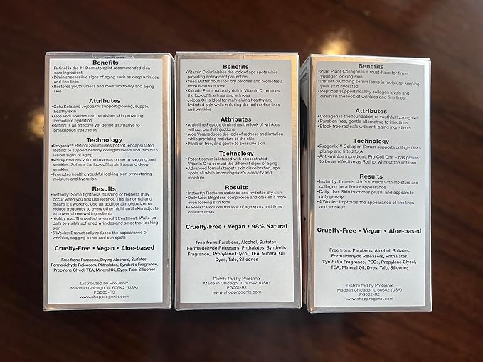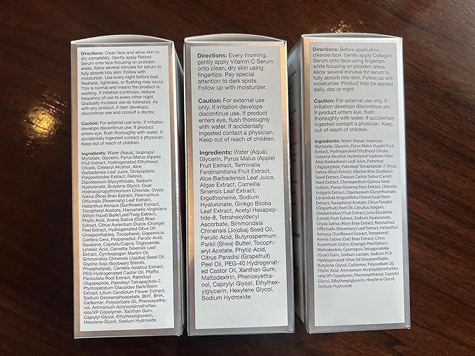 Professional Skin Care Set. Anti-aging Serum Set Contains Collagen Serum, Retinol Serum, Vitamin C Serum. Helps W/Appearance Of Wrinkles, Plump Skin, & Brighten Skin, 1 Fl Oz (3-Pack)