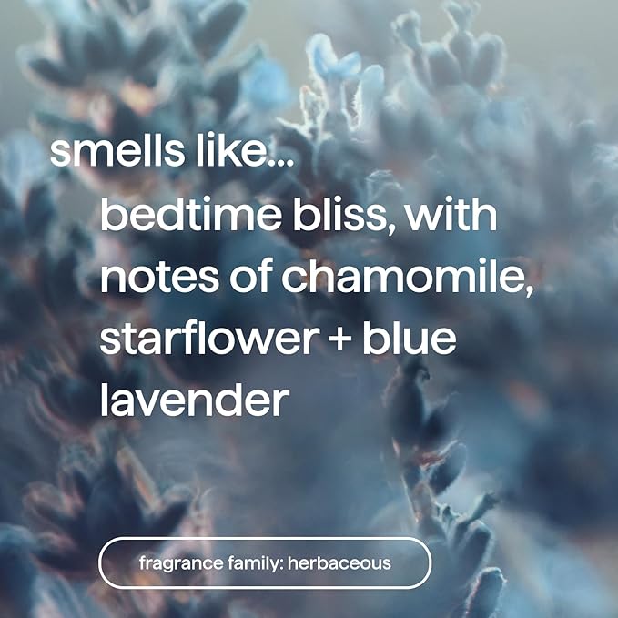 • Wind Down fragrance is infused with chamomile, starflower + blue lavender and smells like bedtime bliss.