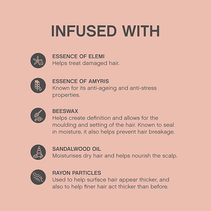 • Infused with essential oil of amyris and elemi, this weightless lotion will thicken hair, providing natural movement and body. Rayon particles create a thicker surface making fine hair act thicker. Natural movement and body, paraben and sulphate free, thickening, fortifying, strengthens hair, volumising.