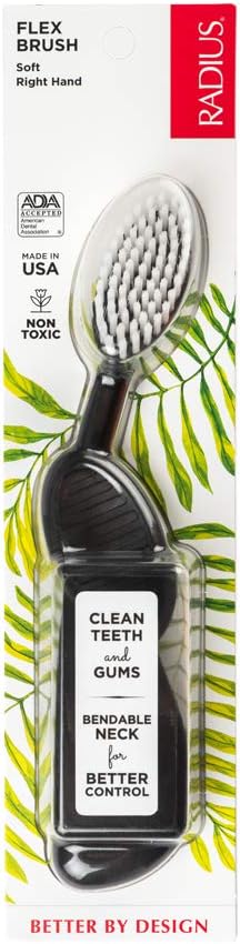 RADIUS Toothbrush, Flex Brush, Soft Bristles, Right Handed, Black Brush with White Bristles, BPA Free & ADA Accepted, Pack of 1