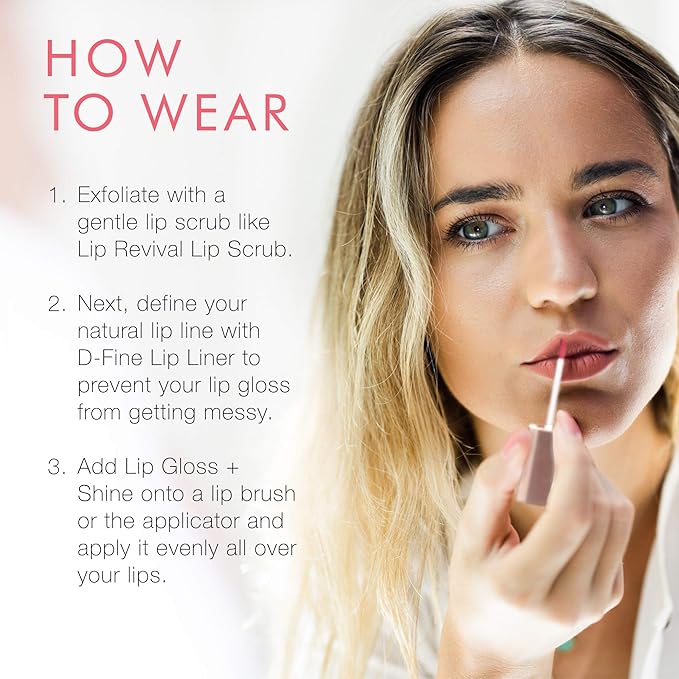 • PLUMPING LIP GLOSS - Lip Gloss + Shine is a high shine, non-sticky, naturally plumping gloss available in ten shades: D-Light, Dream On, Kiss Me, Lighthearted, Light My Fire, Nudist, Orange Rush, Rebel Rebel, Starlust & Turned On.