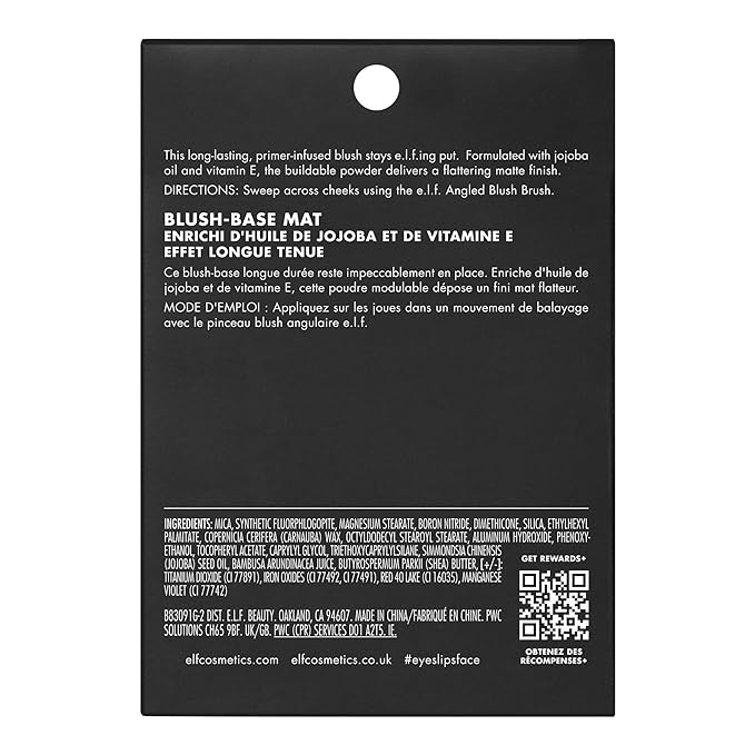 e.l.f. Primer-Infused Blush, Long-Wear, Matte, Bold, Lightweight, Blends Easily, Contours Cheeks, All-Day Wear, 0.35 Oz