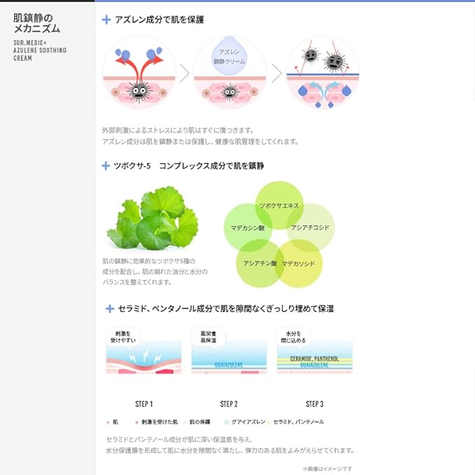 • [Skin Soothing] Enriched skin soothing ingredient, Guaiazulen, instantly calms and protects a sensitive skin.