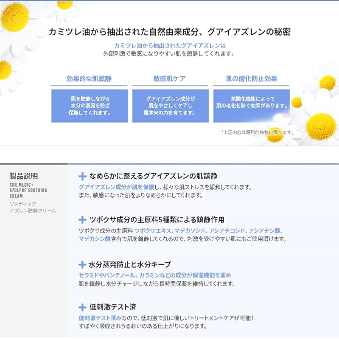 SURMEDIC AZULENE Moisturizing Soothing Cream, Calming Cream for Sensitive Skin, Daily Facial Moisturizer for Barrier Repair, Blemish Relief Care, Korean Skincare 50ml, 1.69 oz