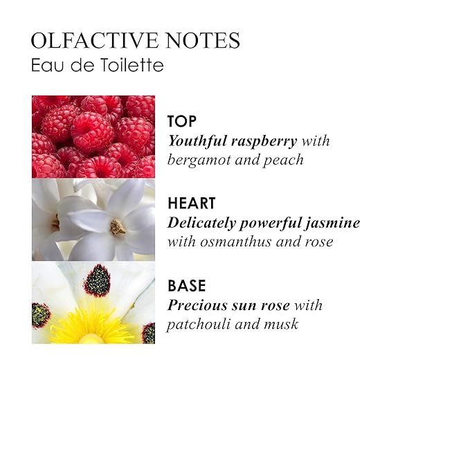 • A harmonic expression of femininity,this eau de toilette features jasmine,rose and sweet raspberry