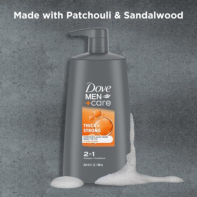 • Dove Men+Care Thick + Strong 2-in-1 Shampoo and Conditioner is designed for men with fine and thinning strands who want stronger, more resilient hair.