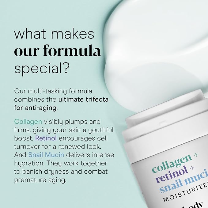 • LOOK & FEEL FOREVER YOUNG: With the power trio of anti-aging ingredients (collagen, retinol, and snail mucin), this face moisturizer for women & men softens visible wrinkles while keeping skin looking plump and firm. Your youthful glow begins here