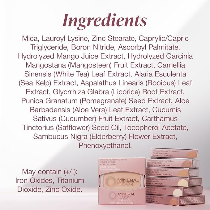 • PRESSED POWDER FOUNDATION: Preserve your naturally glowing complexion with the Mineral Fusion Powder Foundation. This makeup foundation is triple-milled for a smooth finish that airbrushes pores, ensuring that you stay shine-free and photo-ready