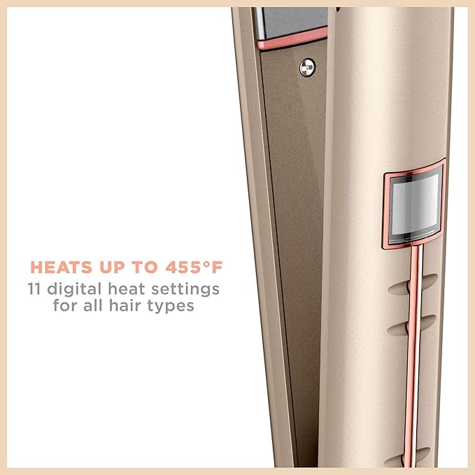 • Frizz Free Titanium Ceramic Flat Iron: With 11 heat settings, the 1 inch titanium ceramic floating plates provide even heat, eliminate gaps, and get close to the roots for ultra straight styles