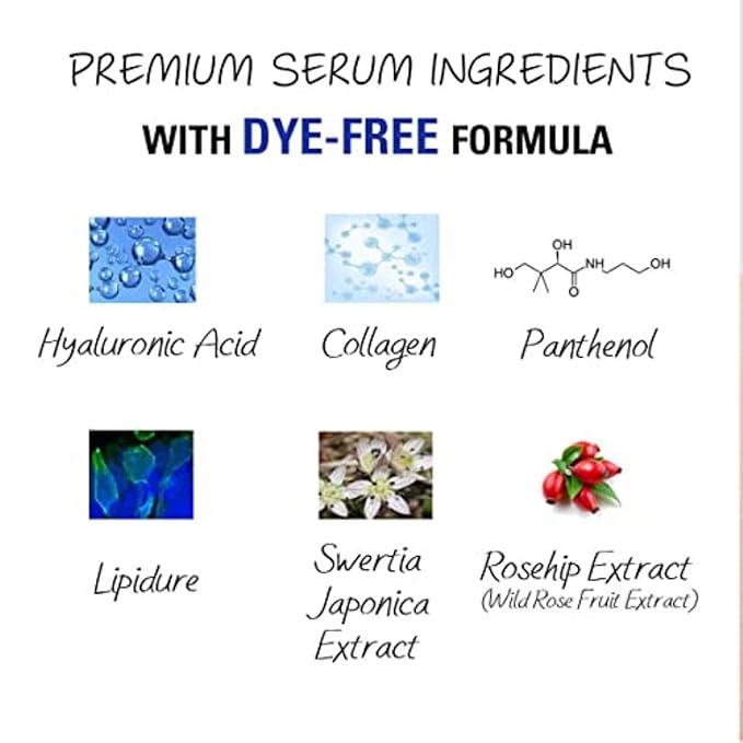 • 【PREMIUM SERUM INGREDIENTS WITH DYE-FREE FORMULA】 Rosehip Extract (Wild Rose Fruit Extract), and Swertia Japonica Extract and dye-free natural ingredients that even avoid pigmentation on the skin
