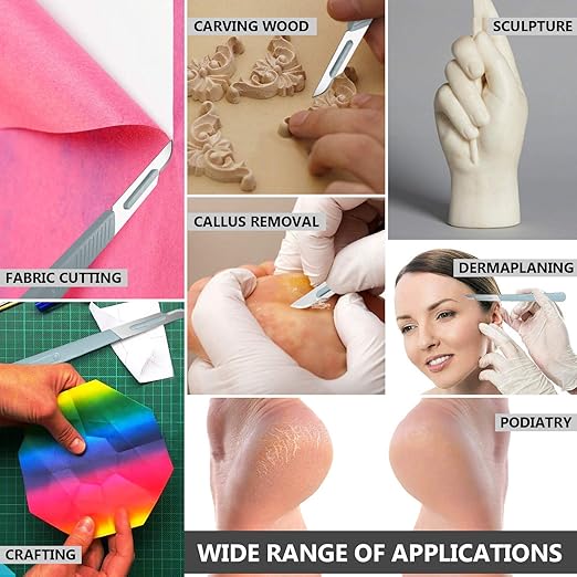 - ⭐ A TON OF OTHER USES - mycology, comedones removal, prototyping electronics, taxidermy supplies, such as scapula , dermablade for face, disposable scalpel blades for model making, wood and clay sculpture, desktop work, small cuts and trimming, disposable scalpel for dermaplaning blades, biology projects in school and labs, arts and crafts, trimming, gardening, vinyl cuts, wood projects, surgery medical dissection , dermaplane razor for women face, scalpels for skin etc