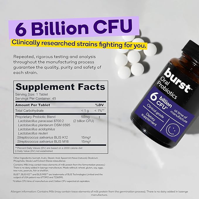 Burst Dental Probiotics (45 Count) | for Healthy Oral Cavity, Bad Breath, Immune System & Sinus Support | Promotes Upper Respiratory Health and Beneficial Bacteria | Blis K12 & M18
