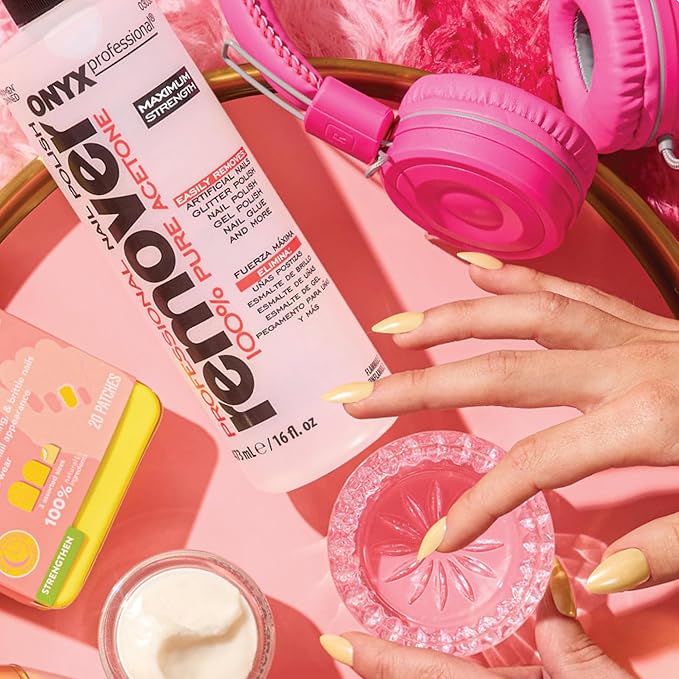 • 100% Acetone Gel Polish Remover & Nail File: Onyx Professional's pure acetone nail polish remover effortlessly removes a variety of nail polish, leaving your nails looking clean and polished, while the nail file shapes your nails the way you desire