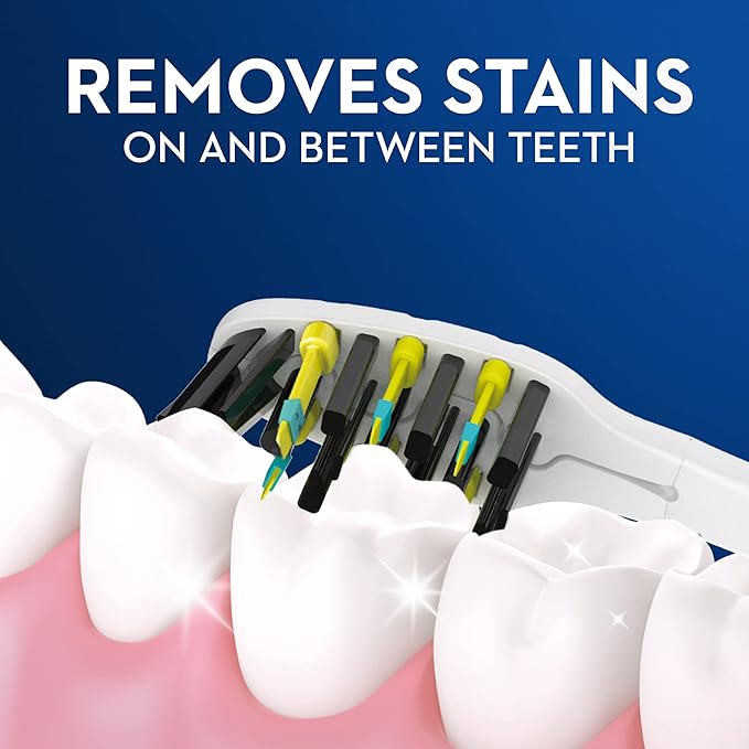 • Penetrates deep between teeth and hard-to-reach areas of the mouth to sweep away plaque and stains caused by food