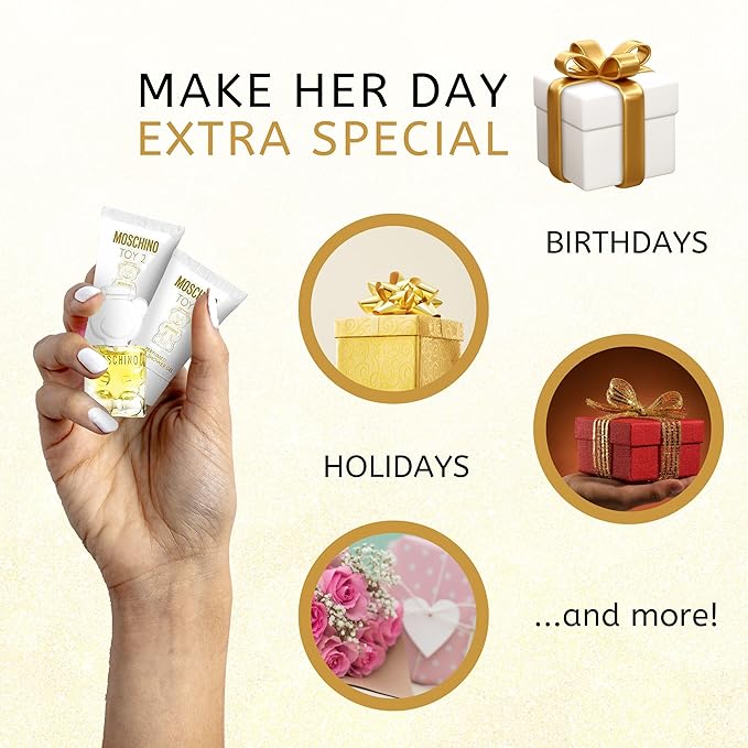• MOSCHINO SIGNATURE SCENT – A fresh, modern fragrance set from Moschino’s playful Toy 2 collection.