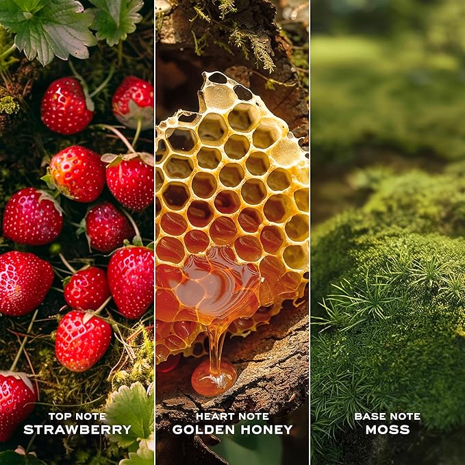 • Top Notes: Pear, Strawberry, Bergamot Heart Notes: Jasmine, Rose Buds, Honey Base Notes: Benzoin, Moss, Vanilla, Musks