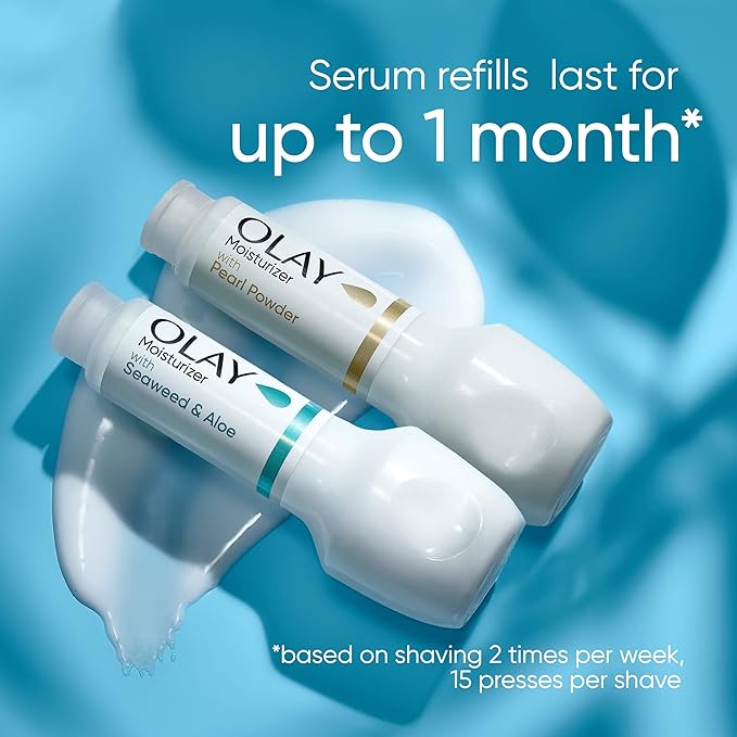 • With Olay moisturizer for soft and silky post-shave skin: hydrate your skin while shaving, and enjoy the floral scent and the touch of seaborn minerals from an easily replaceable bottle that lasts a whole month
