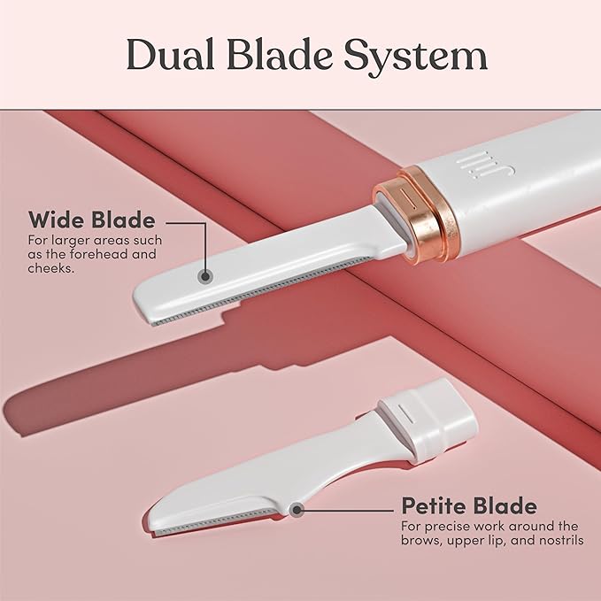 • TWO SIZES FIT ALL: With our petite-blade designed for precise work like brow shaping, and our wide-blade built for cheeks and forehead, Jill considers every area on even the most sensitive of faces. It is intended to use both blades for 1 shave depending on the area you're shaving.