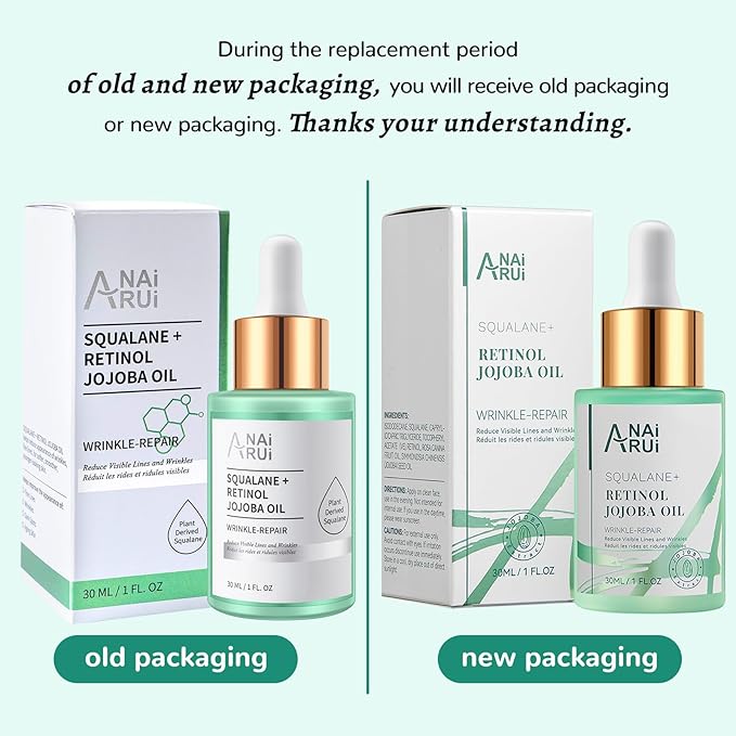 • Dryness and Collagen reduction are the main factors that cause our skin elasticity loss. Squalane oil is a great moisturizer that can effectively moisturize dry skin, and increase skin elasticity and firmness, while retinol reduces fine lines and wrinkles by increasing the production of collagen, Jojoba oil help slow the aging signs of fine lines & wrinkles.