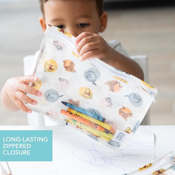 Bumkins Disney Travel Bag, Toiletry, TSA Approved Pouch, Zip Bag, Quart Size Airline Compliant, Clear-Sided, Baby, Diaper Bag Organization, Accessories, Packing, Set of 3 Sizes, Winnie the Pooh
