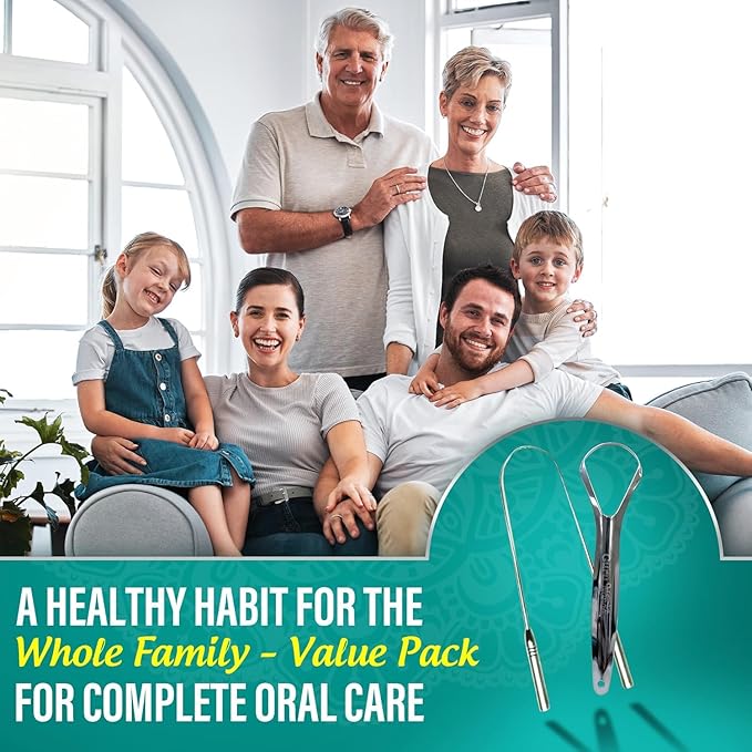 • STAINLESS STEEL TONGUE SCRAPER FOR DURABILITY: Made with 420 medical grade steel, the tongue scraper is rust-proof and stain-resistant, helping you clean plaque gently for an improved sense of taste.
