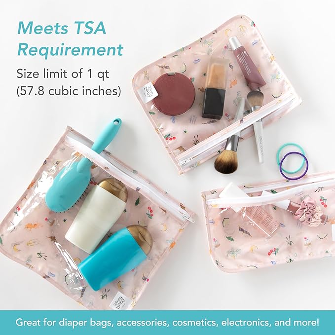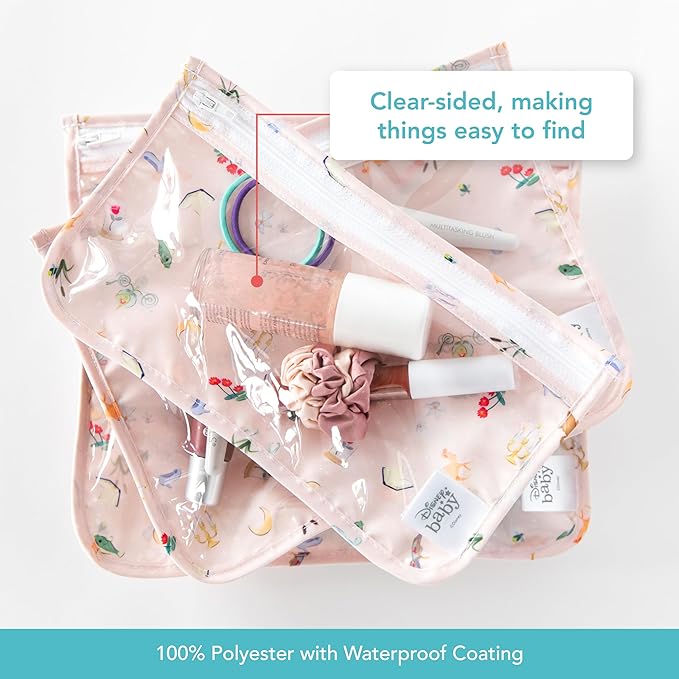 Bumkins Disney Travel Bag, Toiletry, TSA Approved Pouch, Zip Bag, Quart Size Airline Compliant, Clear-Sided, Baby, Diaper Bag Organization, Accessories, Packing, Set of 3 Sizes, Princess Magic Pink