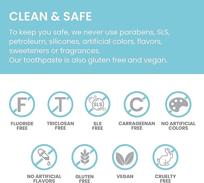 • Thoughtfully crafted: This SLS free toothpaste is formulated without fluoride, triclosan, parabens, or carrageenan; an ideal vegan and gluten free tooth paste