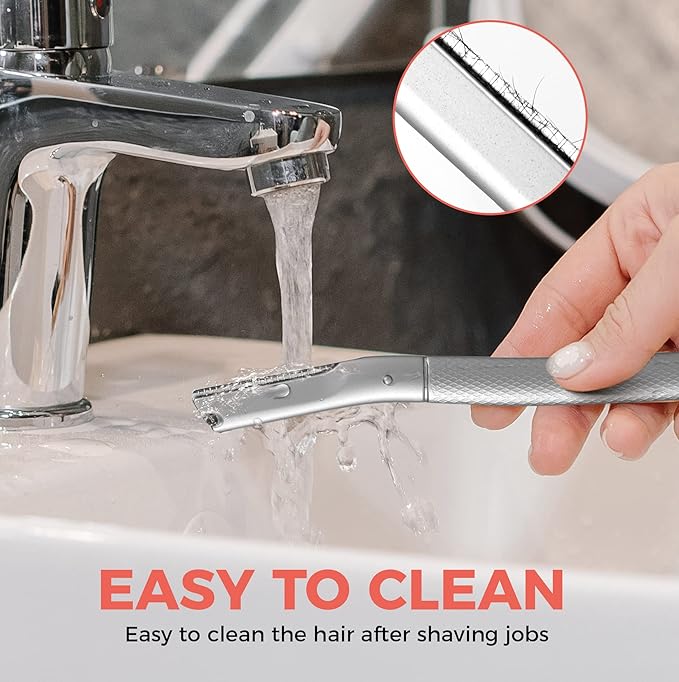 • TRIMMER FOR SENSITIVE AREAS: Our high-quality face shaver provides strength and precision to trim sensitive areas around the eyebrows, upper lip, cheek fuzz, bikini lines, and chin hairs, making it the best choice for delicate skin.