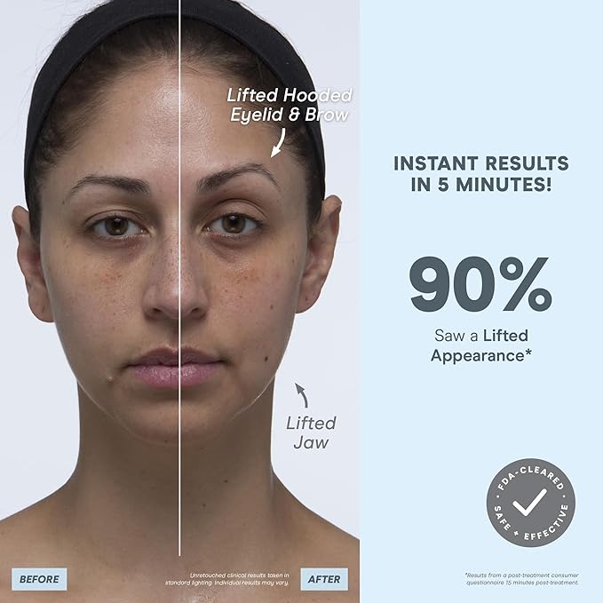- Instant & Lasting On-The-Go Results - The petite and portable design of your NuFACE MINI+ facial toning device makes it perfect for on-the-go lifting. Quick 5-minute sessions throughout the week help to sculpt and firm the face & neck, improve cheek contour, lift brows, and smooth fine lines and wrinkles. 95% of users say they saw improvement in the appearance of sagging skin around the neck, 90% saw a more lifted jaw appearance, and 93% saw a reduction in the appearance of deep forehead lines.