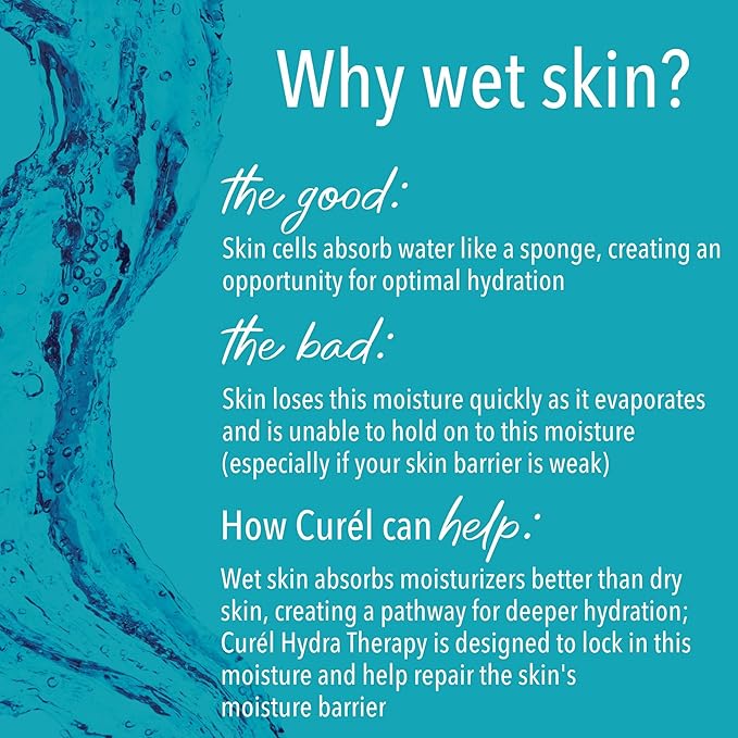 • DRY SKIN NOURISHMENT - Our Curel Hydra Therapy moisturizer is activated by water on freshly-showered skin. It penetrates into the skin surface helping to repair the moisture barrier