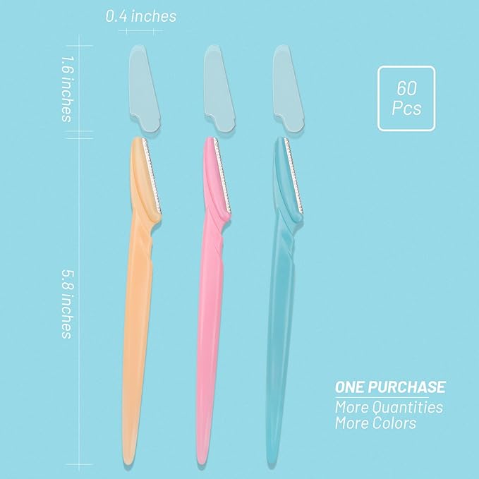 MoHern Eyebrow Razor with Box, 60 Pcs Face Razors for Women and Men, Multipurpose Dermaplane Razor, Dermaplaning Tool for Face, Multi-Color