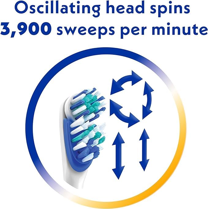 • DUAL ACTION BRUSH HEAD features oscillating circle (spinner) and sliding plate (scrubber), moving up to 3,900 sweeps per minute!