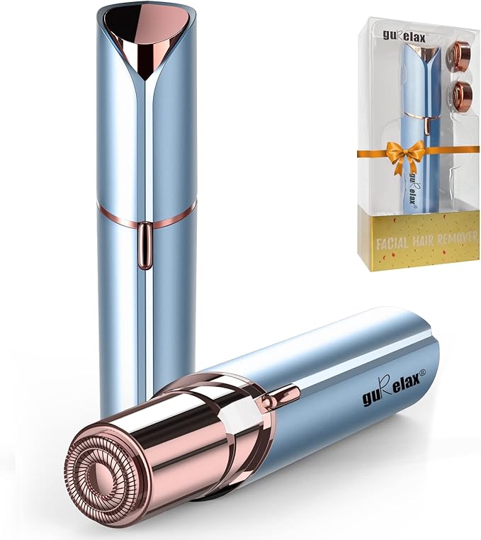 Gurelax Hair Remover for Women, Hair Removal Device, Facial Hair Removal for Women, Best Touch Face Shaver As Christmas Gift, Electric Upper Lip/Mustache Hair Remover, Included 2 x Replacement Heads