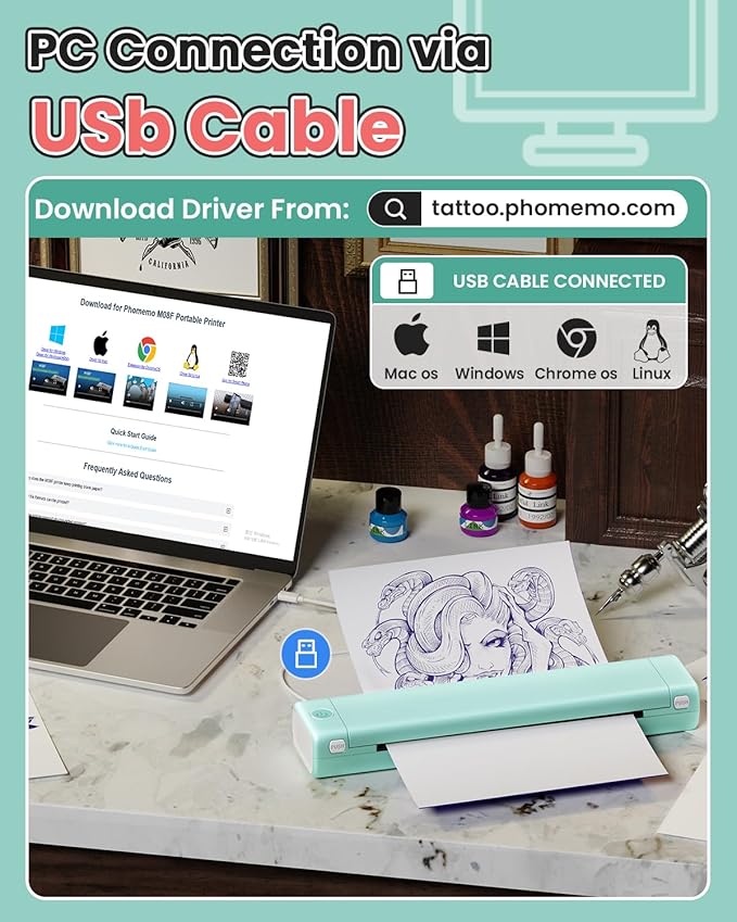 - High Compatibility - With its compatibility with multiple devices such as smartphones, tablets, laptops, and desktop computers, M08F thermal tattoo printer makes designing and printing easier than ever for tattoo enthusiasts. It's compatible with various systems, including Android, iOS, Windows, MacOS, and ChromeOS
