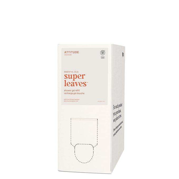 ATTITUDE Body Wash with Essential Oils, EWG Verified Shower Gel, Dermatologically Tested, Plant and Mineral-Based, Vegan Personal Care, Patchouli and Black Pepper, Bulk Refill, 67.62 Fl Oz
