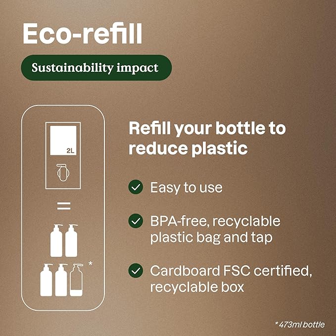 • GOOD FOR THE PLANET: Eco-refills are easy to carry and to use from the comfort of your home; ideal to refill our aluminum bottle with reusable pump infinitely